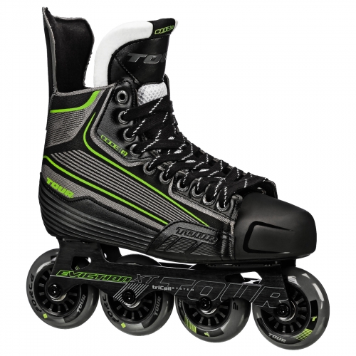 Circle around the rink with consistent stability and comfort with the supportive design of the Tour® Senior Code 9 Roller Hockey Skates. Tailored for casual skaters or entry-level inline players, the Code 9 Skates utilize Tour®’s DPS Technology to insert larger wheels at the front of the skate to reinforce balance as you maintain speed around tight corners.